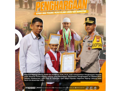 Pada Senin, 4 November 2024, Kapolres Rejang Lebong, AKBP Eko Budiman, S.I.K., M.I.K., M.Si., secara resmi memberikan penghargaan kepada sejumlah